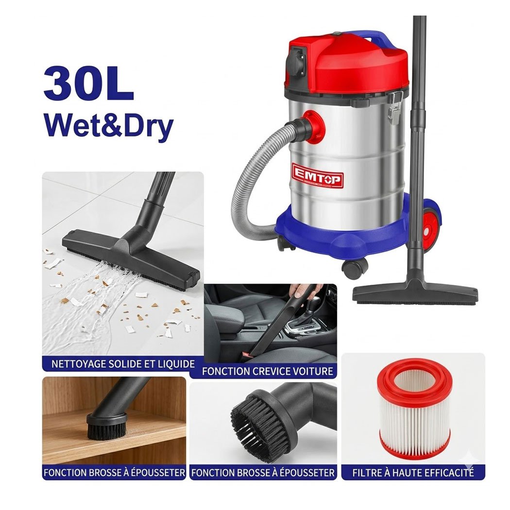 ASPIRATEUR MOUILLE ET SEC 1400W 30L EMTOP EVCR1401