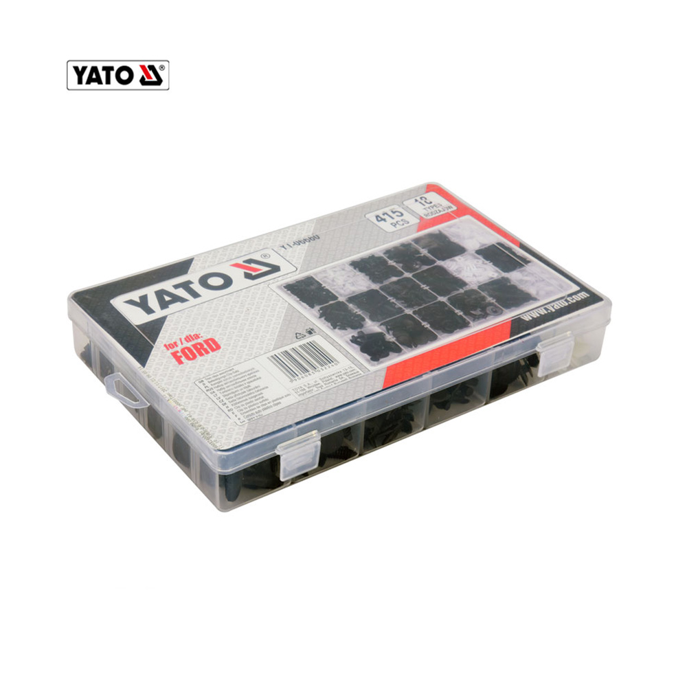 Coffret de 415 clips de fixation en plastique YATO, spécialement conçu pour voitures Ford. Parfait pour panneaux, garnitures et habillages intérieurs auto.
