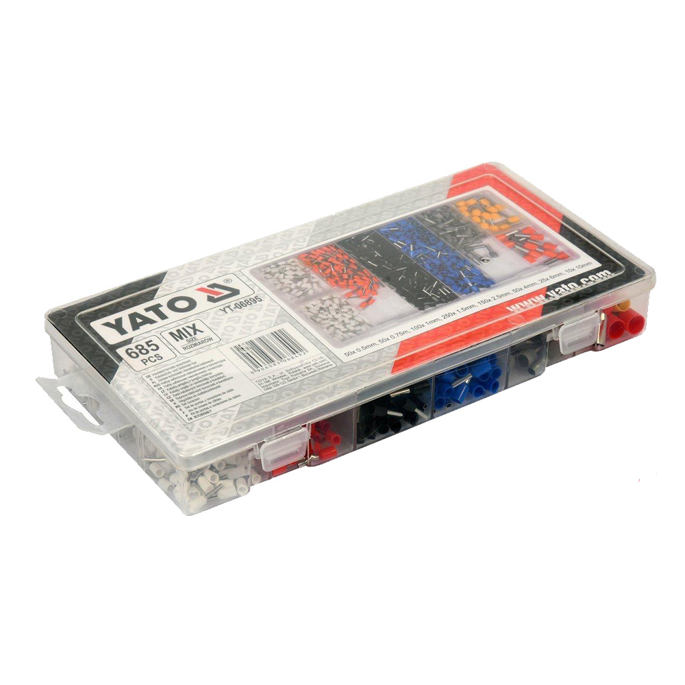 Coffret YATO 06895 de 685 embouts isolés pour câbles, sécurisés et faciles à utiliser, idéal pour les travaux électriques professionnels ou le bricolage.