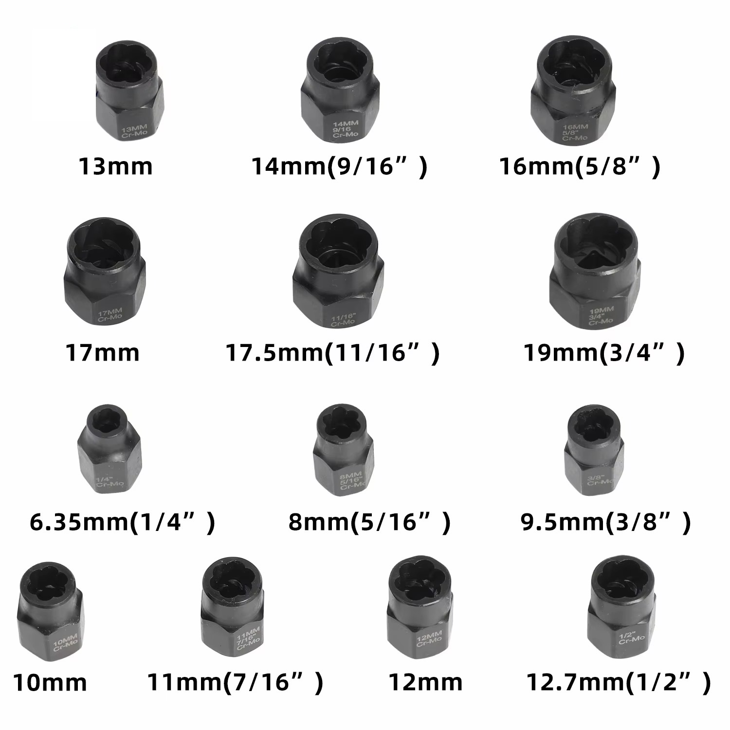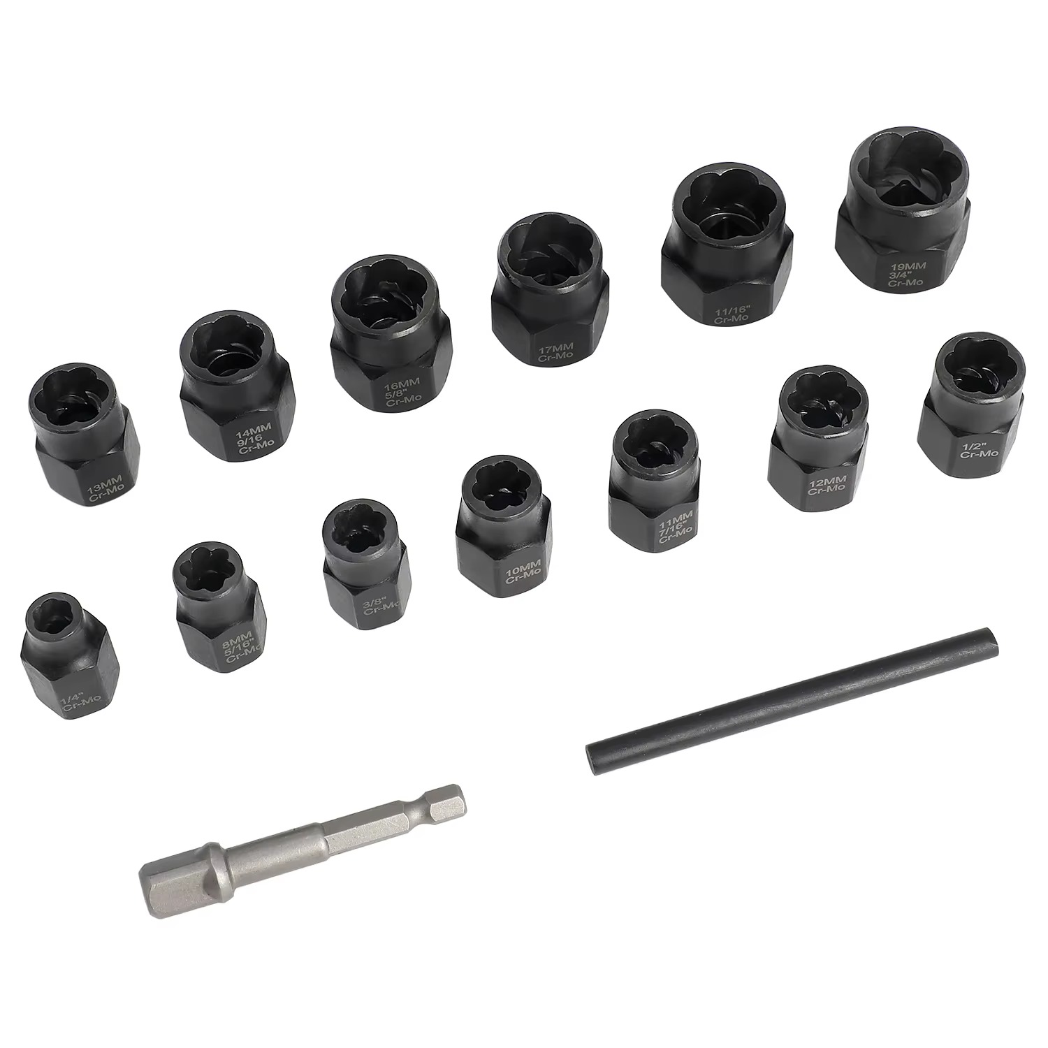Le kit d’extraction d’écrous 14 pièces est spécialement conçu pour retirer facilement les écrous endommagés, grippés, rouillés ou arrondis. Grâce à son profil interne spécifique, chaque douille assure une adhérence maximale, permettant un démontage efficace sans glissement.