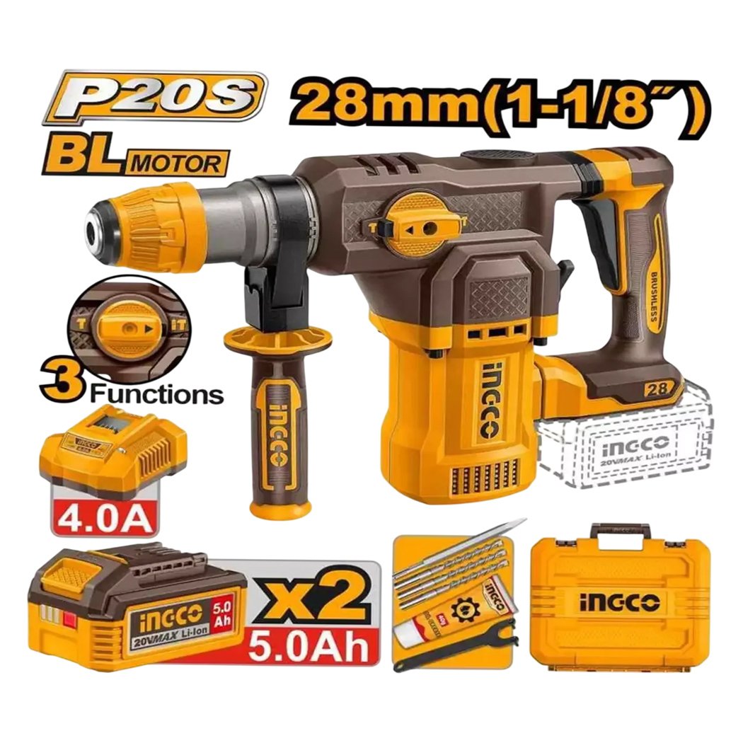 Le marteau perforateur sans fil industriel INGCO CRHLI202862 est un outil puissant et polyvalent, conçu pour les travaux intensifs de perçage, perforation et burinage. Idéal pour le béton, la pierre, le bois et le métal, il offre une performance élevée grâce à son moteur brushless, garantissant plus d’efficacité, une meilleure autonomie et une longue durée de vie.
