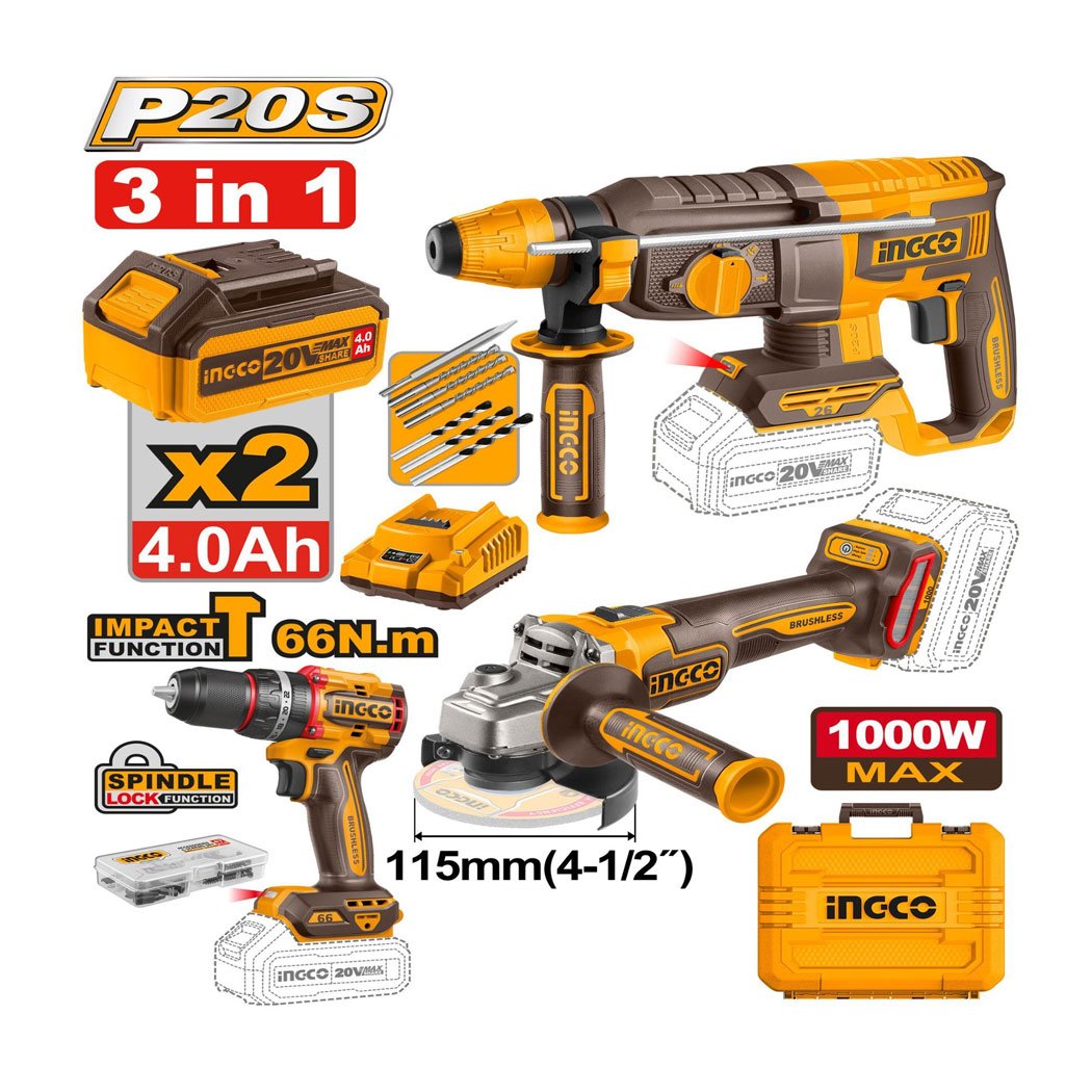 Pack visseuse meule et marteau INGCO 20v