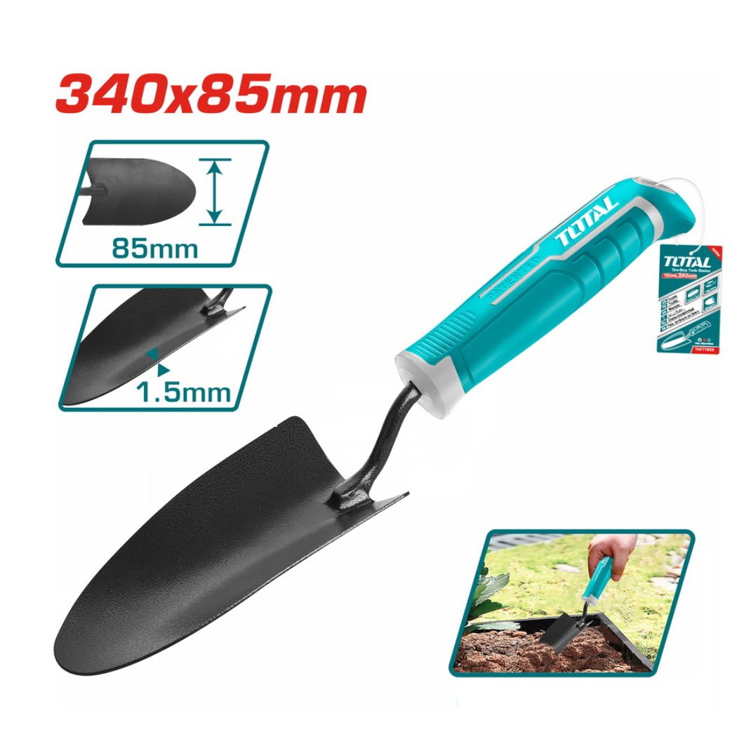 La pelle de jardinage TOTAL THFTT858 est un outil pratique et robuste conçu pour les travaux de plantation, de rempotage et d’entretien du jardin. Elle permet de creuser, déplacer la terre et manipuler facilement le sol avec précision.