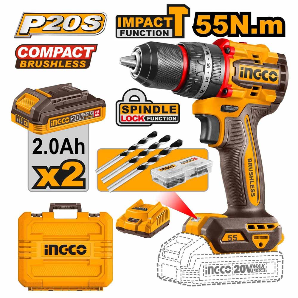 Perceuse visseuse 20V INGCO 55N.m CIDLI20558