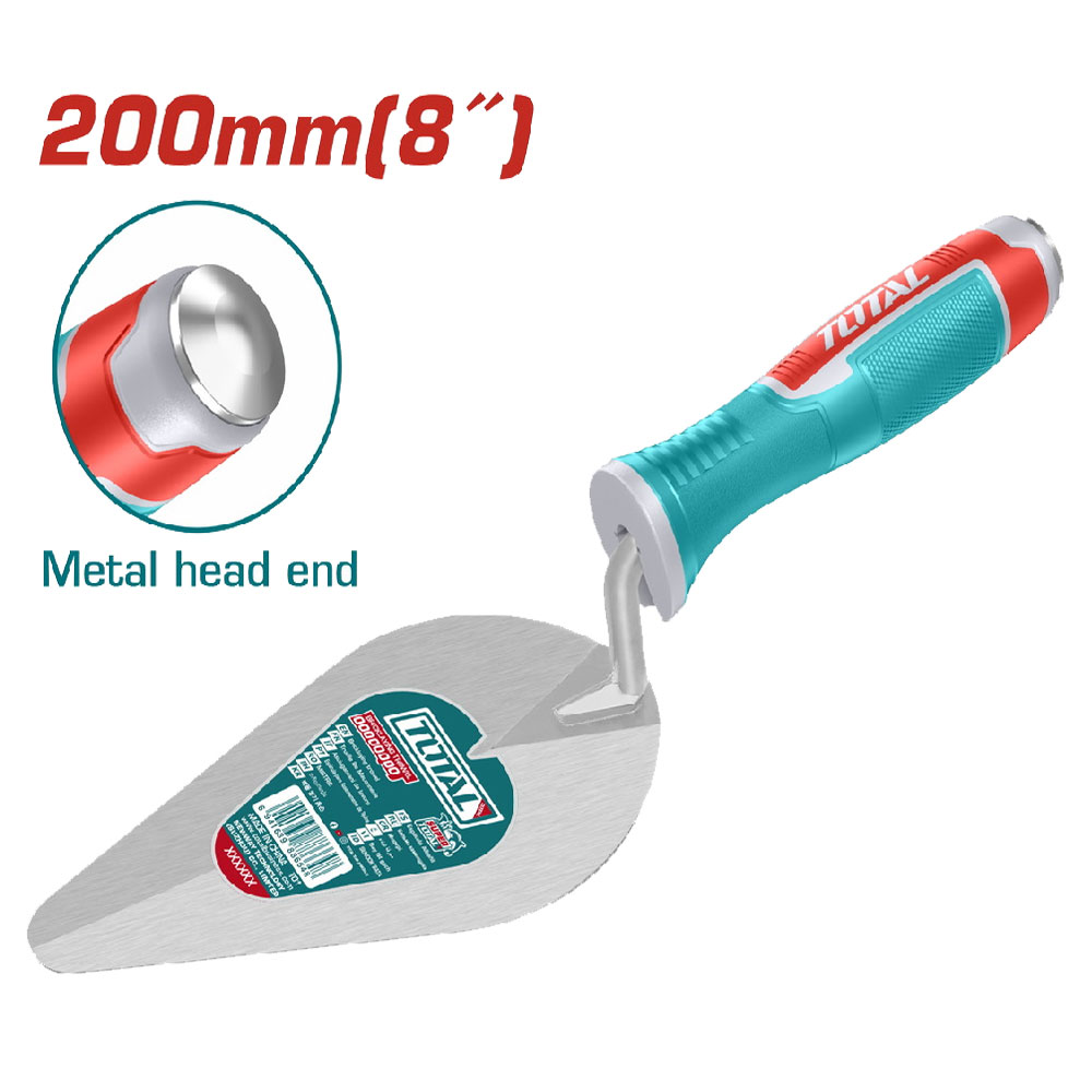 La truelle TOTAL 200 mm est conçue pour offrir précision et confort lors des travaux de maçonnerie, d’enduits et de finitions. Sa lame en acier de forme goutte d’eau (type four) permet une application fluide et homogène des matériaux, tandis que son manche ergonomique en plastique assure une bonne prise en main et un travail sans fatigue.